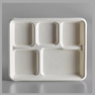 Huhtamaki Chinet 22028 8 1/2" x 12 1/2" Molded Fiber / Pulp 5 Compartment Cafeteria Tray Out of Stock