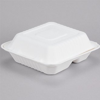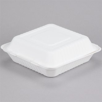 EcoChoice 8" x 8" x 3" Biodegradable, Compostable Sugarcane / Bagasse 3 Compartment Takeout Box - 200/Case Out of Stock