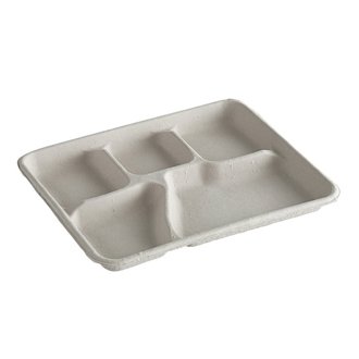 Huhtamaki Chinet 22028 8 1/2" x 12 1/2" Molded Fiber / Pulp 5 Compartment Cafeteria Tray Out of Stock